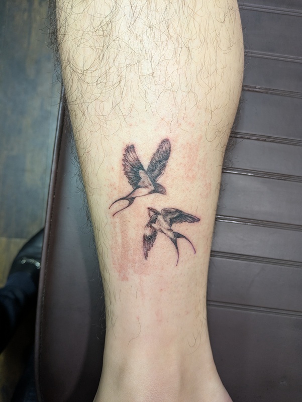 「この燕二匹を右足首内側に」と写真を見せられ「すっかりこのままがいいの?」「はいこのままで」「大きさは?」「小さめが良いです」と数百キロ先からのお客さんでした