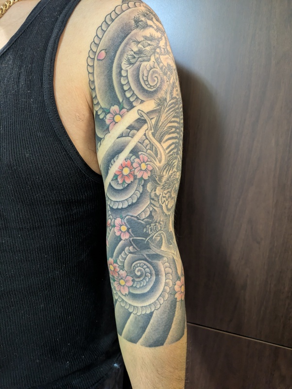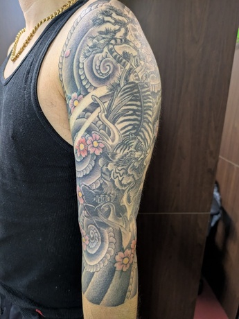 「左腕七分額彫りで胸は無しで肩から虎と松の木を彫って頂きたいです」